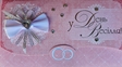 Розмір 160Х90 мм. Висічка, тиснення сріблом, ручні елементи. В комплекті повноколірний вкладиш з привітанням і пакет